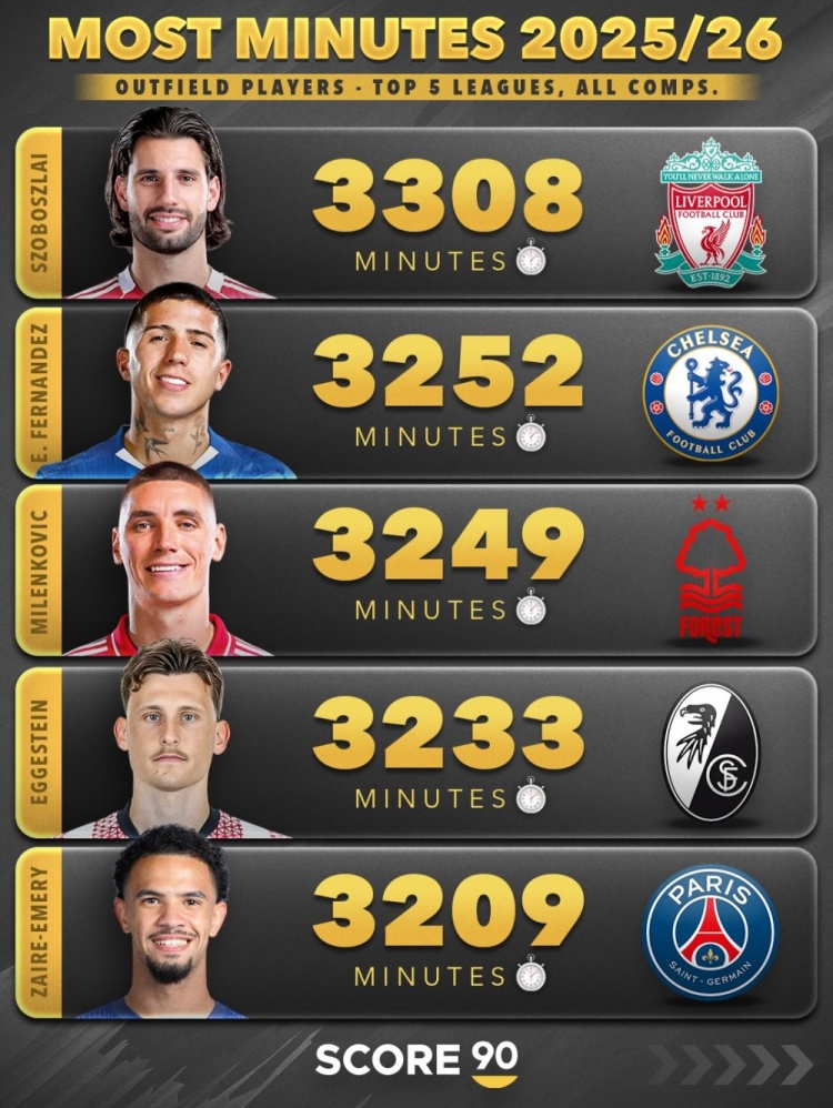 7、恩佐(切尔西):3252分钟
